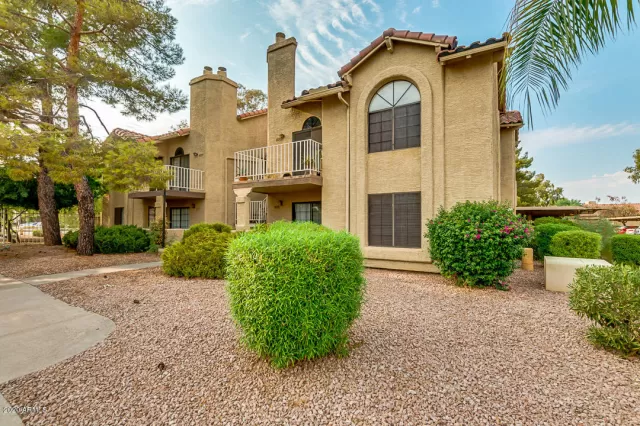 Come see this beautifully upgraded 2 bedroom/2 bathroom lower level end unit condo situated conveniently in one of the most desirable gated communities in Scottsdale. This home features stylish neutral paint, granite countertops, new carpet and laminate floors, newer AC unit (5 years old), and newer washer/and dryer included. Enjoy the well-maintained community pool and spa, pickleball and racquetball courts, as well as the sizable community and workout areas. Covered parking with lots of guest parking. The cozy patio is tucked away with views of the community pool and grass area. Minutes to the loop 101, dining, shopping, and entertainment. One pet under 35 lbs per CC&Rs. Walk to restaurants, enjoy bike path and shopping.